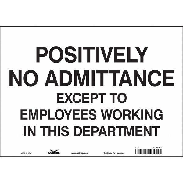 Safety Sign, Horizontal Rectangle, Number of Printed Sides 1, English, Sign Format Other Format, Sign Legend Positively No Admittance Except To Employees Working In This Department, Sign Legend Background Color White, Sign Legend Style Text
