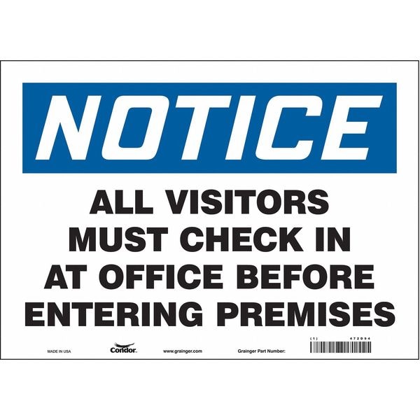 Safety Sign, Horizontal Rectangle, Number of Printed Sides 1, English, Sign Legend All Visitors Must Check In At Office Before Entering Premises, Sign Legend Background Color White, Sign Legend Style Text