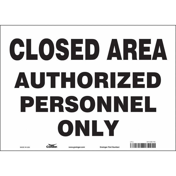 Safety Sign, Horizontal Rectangle, Number of Printed Sides 1, English, Sign Format Other Format, Sign Legend Closed Area Authorized Personnel Only, Sign Legend Background Color White, Sign Legend Style Text