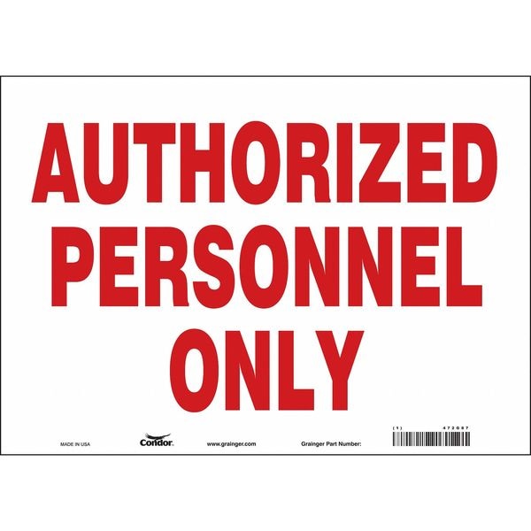 Safety Sign, Horizontal Rectangle, Number of Printed Sides 1, English, Sign Format Other Format, Sign Legend Authorized Personnel Only, Sign Legend Background Color White, Sign Legend Style Text