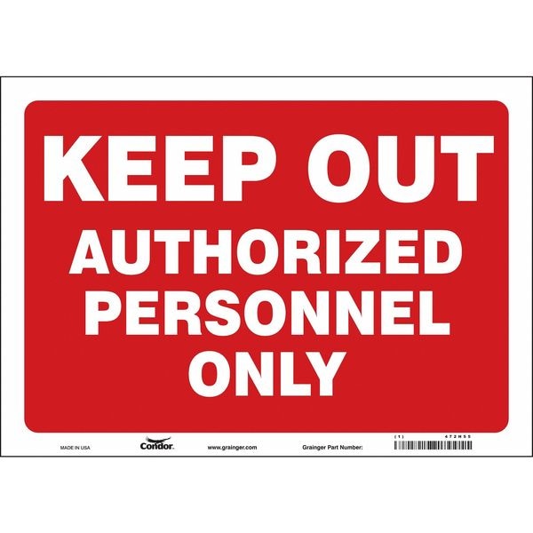 Safety Sign, Horizontal Rectangle, Number of Printed Sides 1, English, Sign Format Other Format, Sign Legend Keep Out Authorized Personnel Only, Sign Legend Background Color Red, White, Sign Legend Style Text