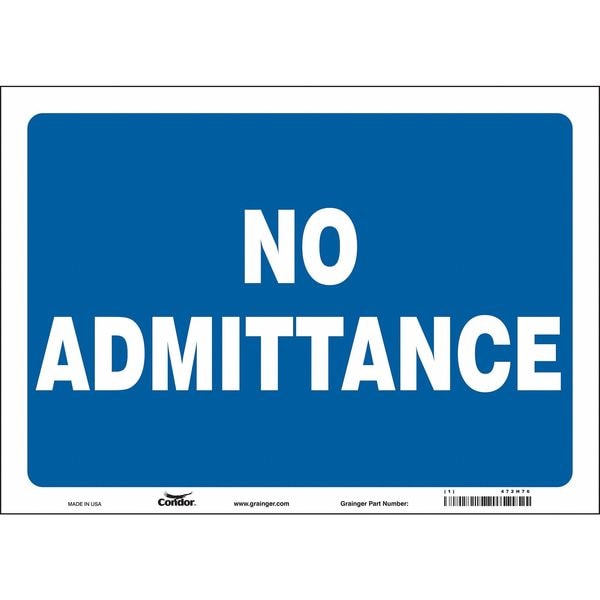 Safety Sign, Horizontal Rectangle, Number of Printed Sides 1, English, Sign Format Other Format, Sign Legend No Admittance, Sign Legend Background Color Blue, White, Sign Legend Style Text