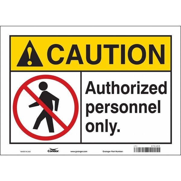 Safety Sign, Horizontal Rectangle, Number of Printed Sides 1, English, Sign Format ANSI/OSHA Format, Sign Legend Authorized Personnel Only., Sign Legend Background Color White, Sign Legend Style Symbol and Text