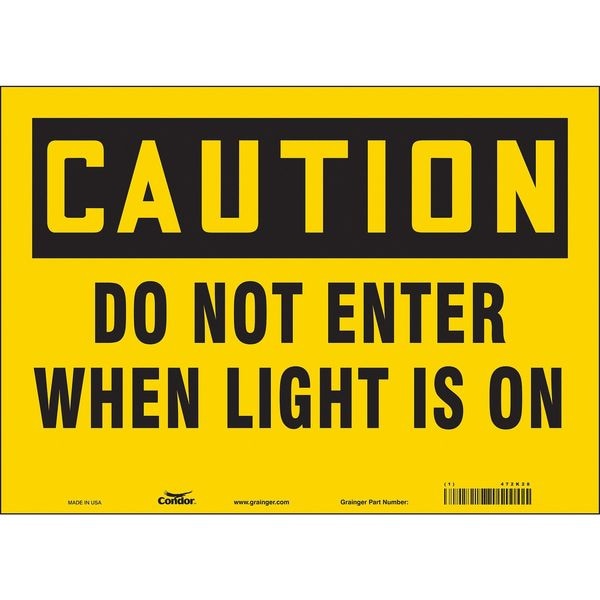 Safety Sign, Horizontal Rectangle, Number of Printed Sides 1, English, Sign Format Traditional OSHA, Sign Legend Do Not Enter When Light Is On, Sign Legend Background Color Yellow, Sign Legend Style Text