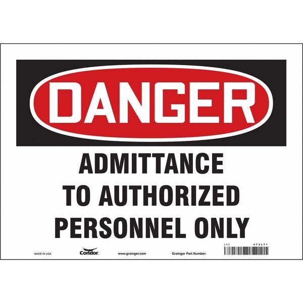 Safety Sign, Horizontal Rectangle, Number of Printed Sides 1, English, Sign Format Traditional OSHA, Sign Legend Admittance To Authorized Personnel Only, Sign Legend Background Color White, Sign Legend Style Text