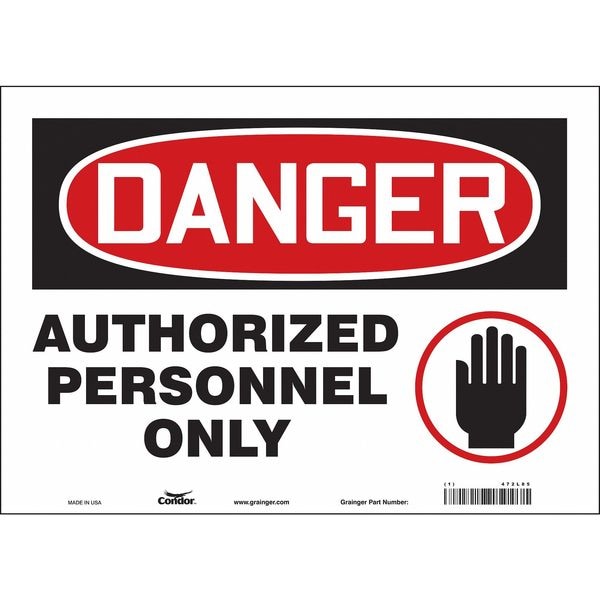 Safety Sign, Horizontal Rectangle, Number of Printed Sides 1, English, Sign Format Traditional OSHA, Sign Legend Authorized Personnel Only, Sign Legend Background Color White, Sign Legend Style Symbol and Text