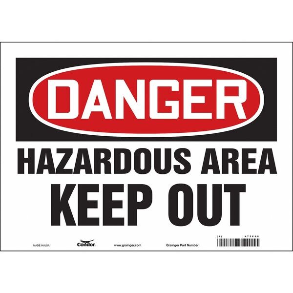 Safety Sign, Horizontal Rectangle, Number of Printed Sides 1, English, Sign Format Traditional OSHA, Sign Legend Hazardous Area Keep Out, Sign Legend Background Color White, Sign Legend Style Text
