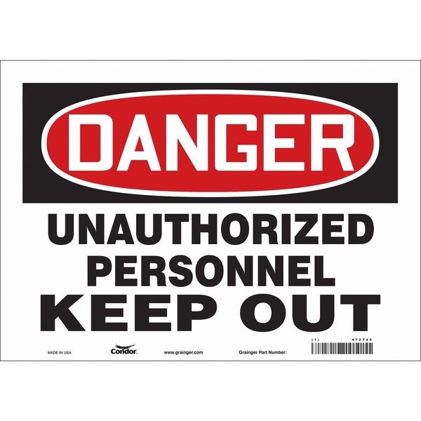 Safety Sign, Horizontal Rectangle, Number of Printed Sides 1, English, Sign Format Traditional OSHA, Sign Legend Unauthorized Personnel Keep Out, Sign Legend Background Color White, Sign Legend Style Text