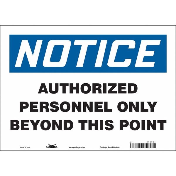 Safety Sign, Horizontal Rectangle, Number of Printed Sides 1, English, Sign Format Traditional OSHA, Sign Legend Authorized Personnel Only Beyond This Point, Sign Legend Background Color White, Sign Legend Style Text