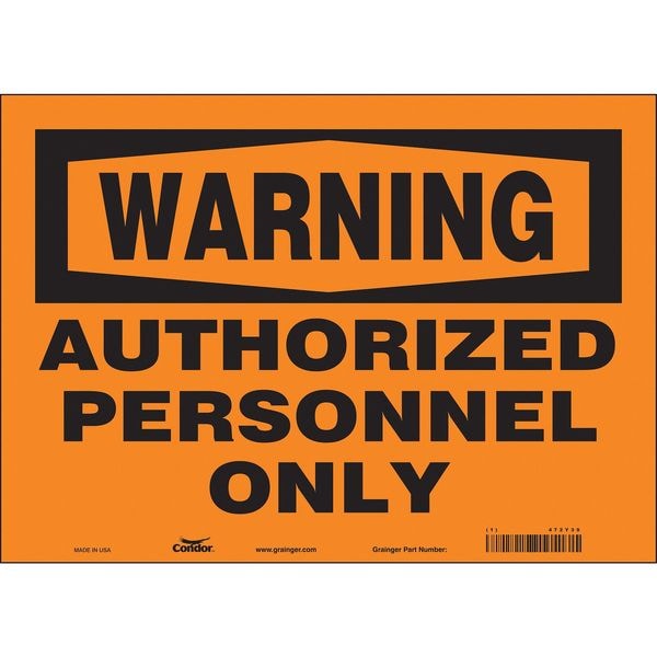 Safety Sign, Horizontal Rectangle, Number of Printed Sides 1, English, Sign Format Traditional OSHA, Sign Legend Authorized Personnel Only, Sign Legend Background Color Orange, Sign Legend Style Text
