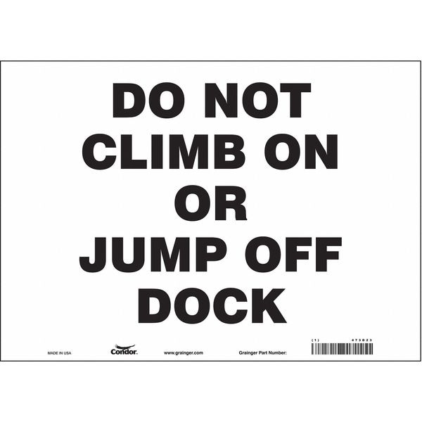 Safety Sign, Horizontal Rectangle, Number of Printed Sides 1, English, Sign Format Other Format, Sign Legend Do Not Climb On Or Jump Off Dock, Sign Legend Background Color White, Sign Legend Style Text