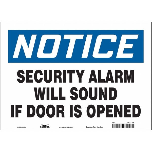 Safety Sign, Horizontal Rectangle, Number of Printed Sides 1, English, Sign Format Traditional OSHA, Sign Legend Security Alarm Will Sound If Door Is Opened, Sign Legend Background Color White, Sign Legend Style Text