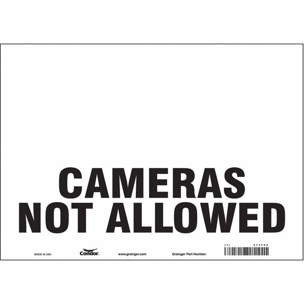 Safety Sign, Horizontal Rectangle, Number of Printed Sides 1, English, Sign Format Other Format, Sign Legend Cameras Not Allowed, Sign Legend Background Color White, Sign Legend Style Symbol and Text