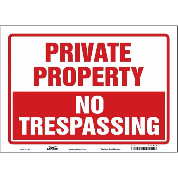 Safety Sign, Horizontal Rectangle, Number of Printed Sides 1, English, Sign Format Other Format, Sign Legend No Trespassing, Sign Legend Background Color Red, White, Sign Legend Style Text