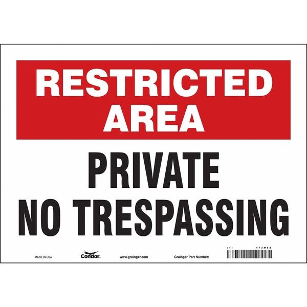 Safety Sign, Horizontal Rectangle, Number of Printed Sides 1, English, Sign Format Other Format, Sign Legend Private No Trespassing, Sign Legend Background Color Red, White, Sign Legend Style Text