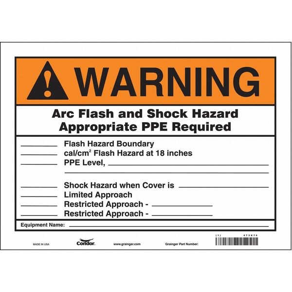 Safety Sign, Horizontal Rectangle, Number of Printed Sides 1, English, Sign Format ANSI/OSHA Format, Sign Legend Arc Flash And Shock Hazard Appropriate PPE Required ___ Flash Hazard Boundary ___ Cal/Cm2 Flash Hazard At 18 Inches, Sign Legend Background Color White, Sign Legend Style Text