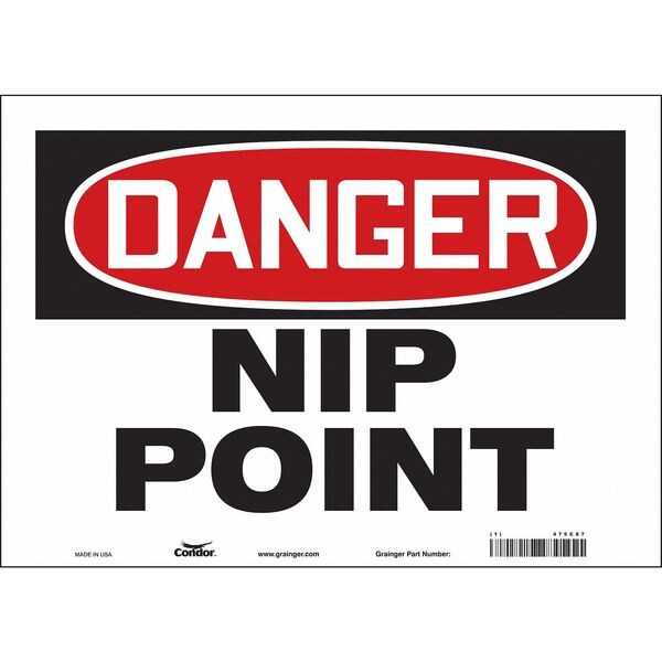 Safety Sign, Horizontal Rectangle, Number of Printed Sides 1, English, Sign Format Traditional OSHA, Sign Legend Nip Point, Sign Legend Background Color White, Sign Legend Style Text