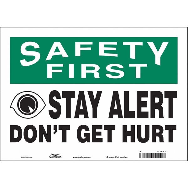 Safety Sign, Horizontal Rectangle, Number of Printed Sides 1, English, Sign Format Traditional OSHA, Sign Legend Stay Alert Don'T Get Hurt, Sign Legend Background Color White, Sign Legend Style Symbol and Text