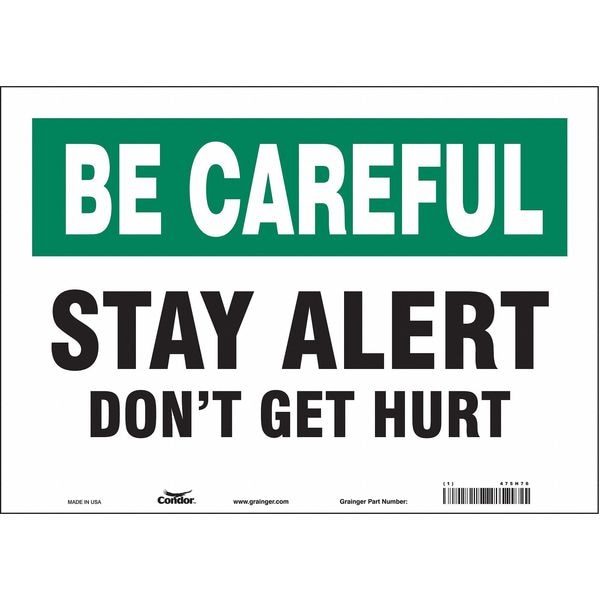 Safety Sign, Horizontal Rectangle, Number of Printed Sides 1, English, Sign Format Other Format, Sign Legend Stay Alert Don't Get Hurt, Sign Legend Background Color Green, White, Sign Legend Style Text