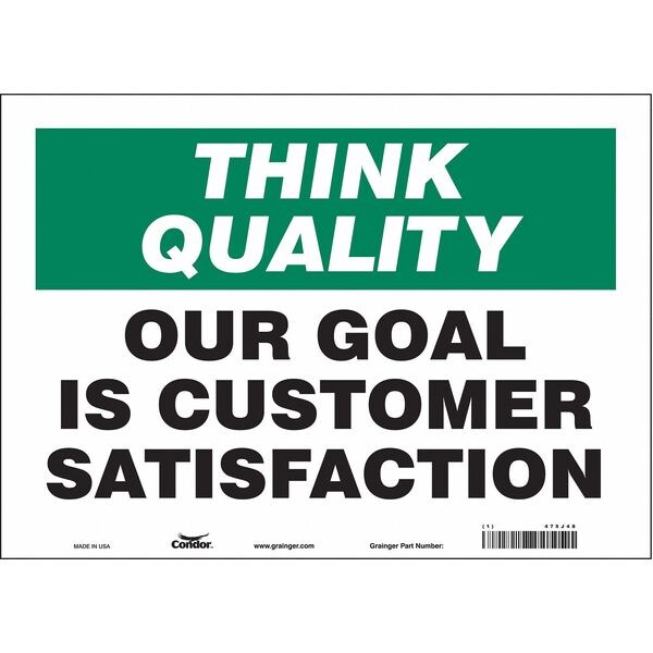 Safety Sign, Horizontal Rectangle, Number of Printed Sides 1, English, Sign Format Other Format, Sign Legend Our Goal Is Customer Satisfaction, Sign Legend Background Color Green, White, Sign Legend Style Text