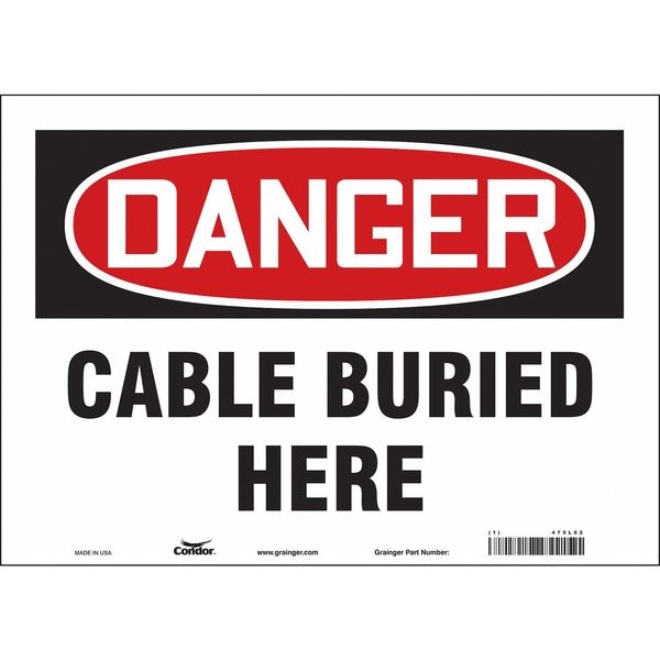 Safety Sign, Horizontal Rectangle, Number of Printed Sides 1, English, Sign Format Traditional OSHA, Sign Legend Cable Buried Here, Sign Legend Background Color White, Sign Legend Style Text
