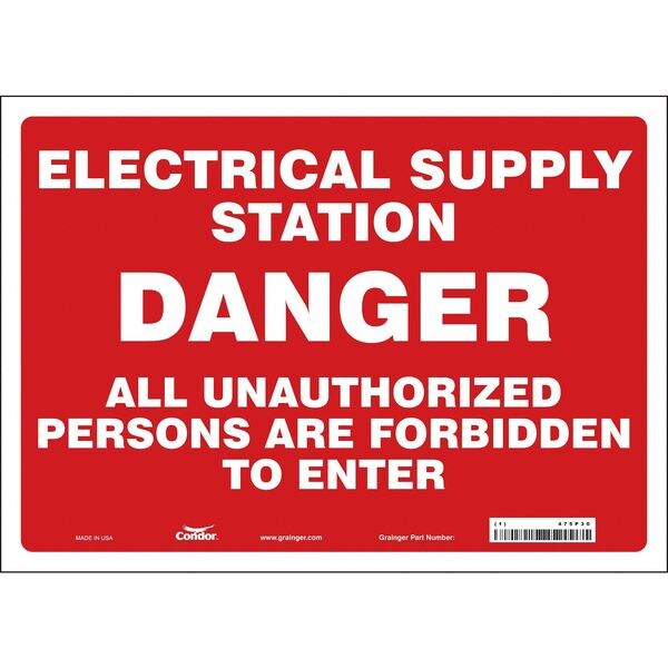 Safety Sign, Horizontal Rectangle, Number of Printed Sides 1, English, Sign Format Other Format, Sign Legend Electrical Supply Station Danger All Unauthorized Persons Are Forbidden To Enter, Sign Legend Background Color Red, Sign Legend Style Text