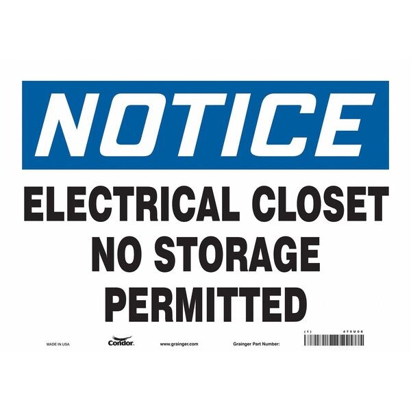 Safety Sign, Horizontal Rectangle, Number of Printed Sides 1, English, Sign Format Traditional OSHA, Sign Legend Electrical Closet No Storage Permitted, Sign Legend Background Color White, Sign Legend Style Text