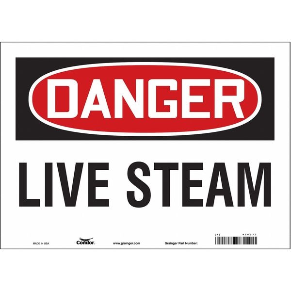 Safety Sign, Horizontal Rectangle, Number of Printed Sides 1, English, Sign Format Traditional OSHA, Sign Legend Live Steam, Sign Legend Background Color White, Sign Legend Style Text