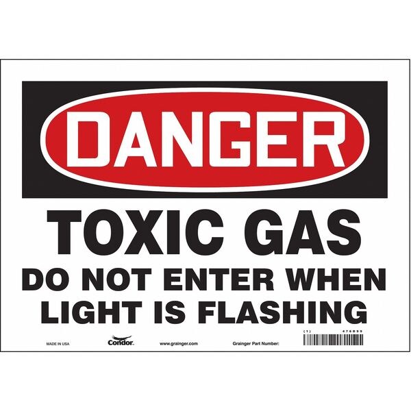 Safety Sign, Horizontal Rectangle, Number of Printed Sides 1, English, Sign Format Traditional OSHA, Sign Legend Toxic Gas Do Not Enter When Light Is Flashing, Sign Legend Background Color White, Sign Legend Style Text