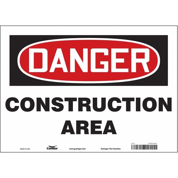 Safety Sign, Horizontal Rectangle, Number of Printed Sides 1, English, Sign Format Traditional OSHA, Sign Legend Construction Area, Sign Legend Background Color White, Sign Legend Style Text