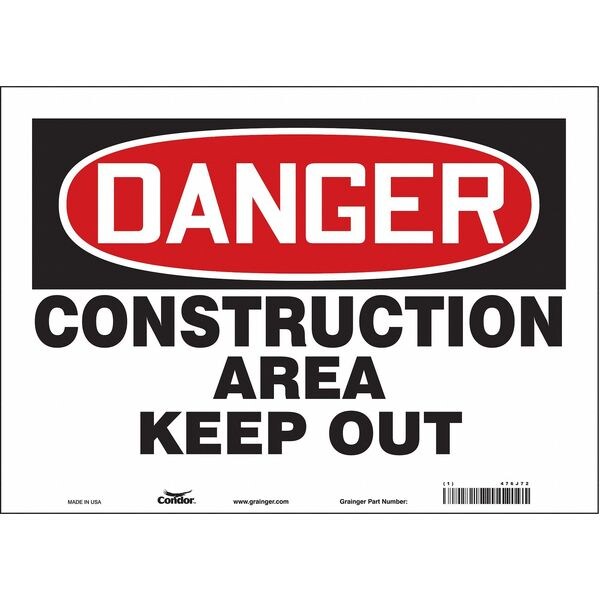 Safety Sign, Horizontal Rectangle, Number of Printed Sides 1, English, Sign Format Traditional OSHA, Sign Legend Construction Area Keep Out, Sign Legend Background Color White, Sign Legend Style Text