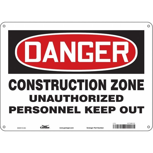 Safety Sign, Horizontal Rectangle, Number of Printed Sides 1, English, Sign Format Traditional OSHA, Sign Legend Construction Zone Unauthorized Personnel Keep Out, Sign Legend Background Color White, Sign Legend Style Text