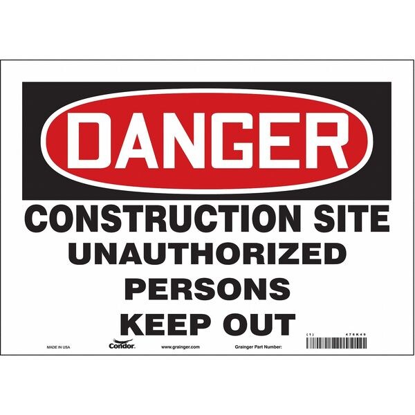 Safety Sign, Horizontal Rectangle, Number of Printed Sides 1, English, Sign Format Traditional OSHA, Sign Legend Construction Site Unauthorized Persons Keep Out, Sign Legend Background Color White, Sign Legend Style Text