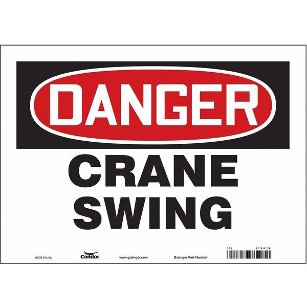 Safety Sign, Horizontal Rectangle, Number of Printed Sides 1, English, Sign Format Traditional OSHA, Sign Legend Crane Swing, Sign Legend Background Color White, Sign Legend Style Text