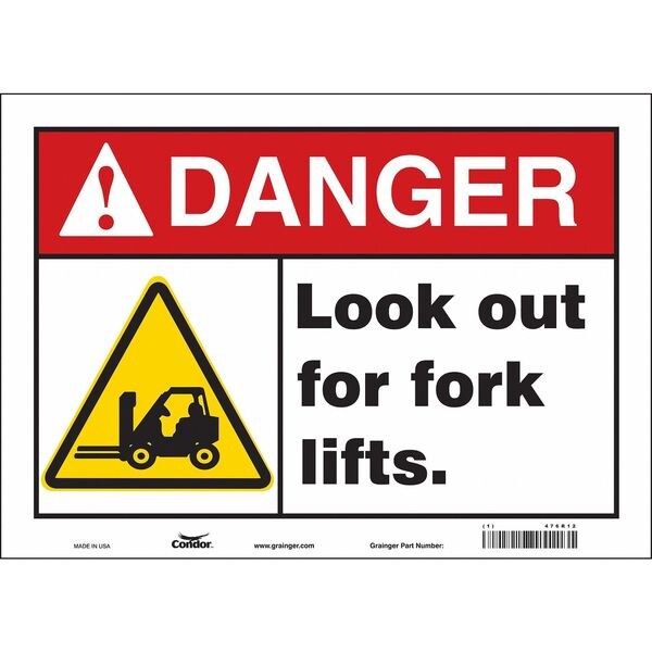 Safety Sign, Horizontal Rectangle, Number of Printed Sides 1, English, Sign Format ANSI/OSHA Format, Sign Legend Look Out For Fork Lifts., Sign Legend Background Color White, Sign Legend Style Symbol and Text