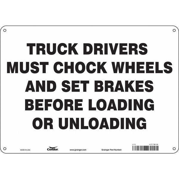 Safety Sign, Horizontal Rectangle, Number of Printed Sides 1, English, Sign Format Other Format, Sign Legend Truck Drivers Must Chock Wheels And Set Brakes Before Loading Or Unloading, Sign Legend Background Color White, Sign Legend Style Text