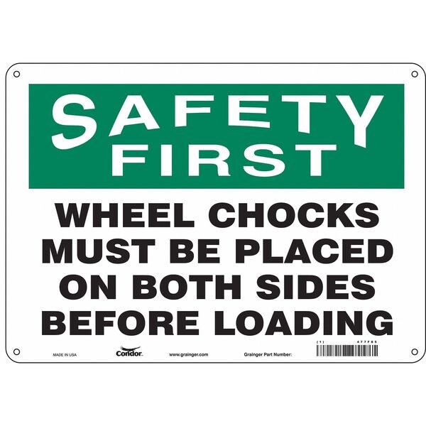 Safety Sign, Horizontal Rectangle, Number of Printed Sides 1, English, Sign Format Traditional OSHA, Sign Legend Wheels Chocks Must Be Placed On Both Sides Before Loading, Sign Legend Background Color White, Sign Legend Style Text
