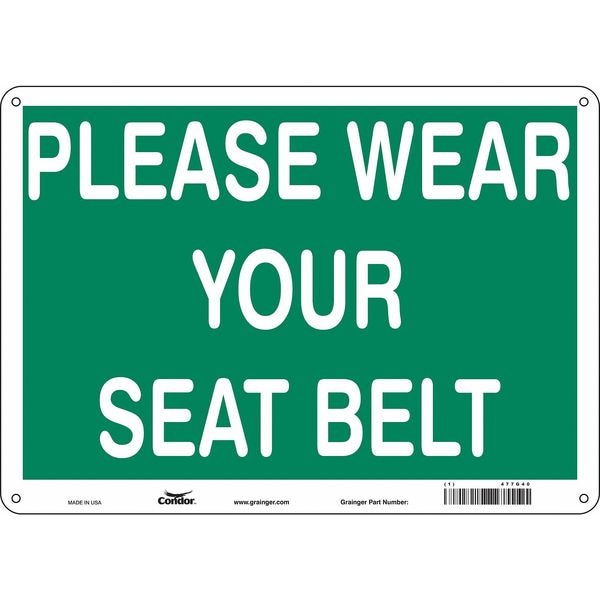 Safety Sign, Horizontal Rectangle, Number of Printed Sides 1, English, Sign Format Other Format, Sign Legend Please Wear Your Seat Belt, Sign Legend Background Color Green, Sign Legend Style Text