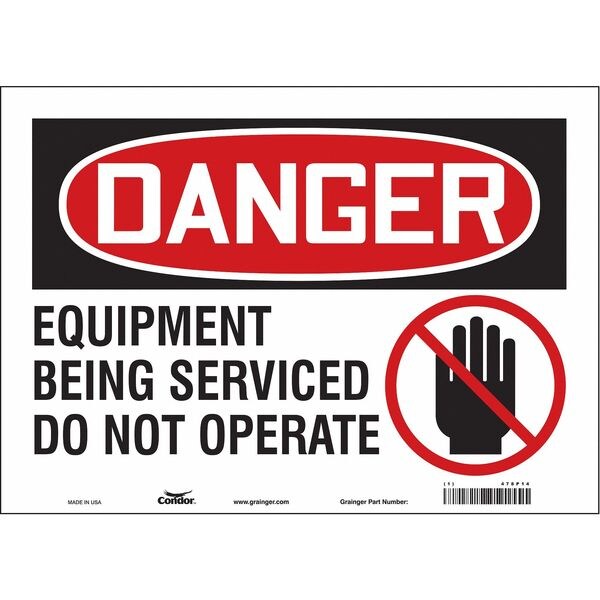 Safety Sign, Horizontal Rectangle, Number of Printed Sides 1, English, Sign Format Traditional OSHA, Sign Legend Equipment Being Serviced Do Not Operate, Sign Legend Background Color White, Sign Legend Style Symbol and Text