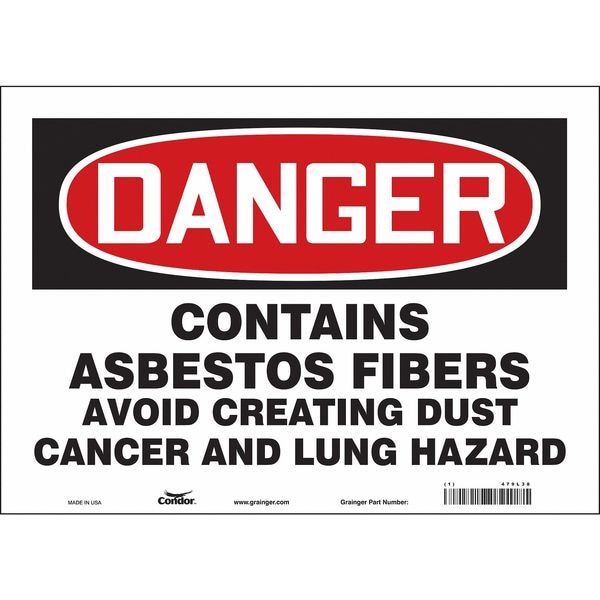 Safety Sign, Horizontal Rectangle, Number of Printed Sides 1, English, Sign Format Traditional OSHA, Sign Legend Contains Asbestos Fibers Avoid Creating Dust Cancer And Lung Hazard, Sign Legend Background Color White, Sign Legend Style Text