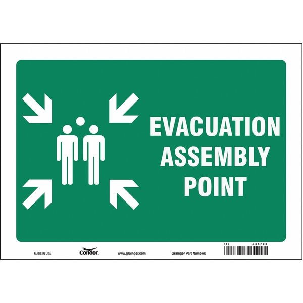 Safety Sign, Horizontal Rectangle, Number of Printed Sides 1, English, Sign Format Other Format, Sign Legend Evacuation Assembly Point, Sign Legend Background Color Green, Sign Legend Style Symbol and Text