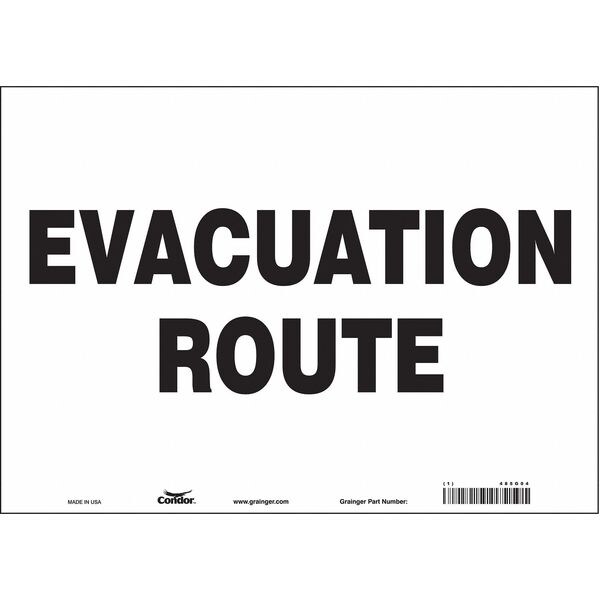 Safety Sign, Horizontal Rectangle, Number of Printed Sides 1, English, Sign Format Other Format, Sign Legend Evacuation Route, Sign Legend Background Color White, Sign Legend Style Text