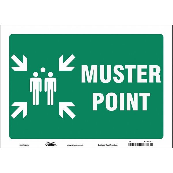 Safety Sign, Horizontal Rectangle, Number of Printed Sides 1, English, Sign Format Other Format, Sign Legend Muster Point, Sign Legend Background Color Green, Sign Legend Style Symbol and Text