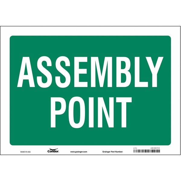 Safety Sign, Horizontal Rectangle, Number of Printed Sides 1, English, Sign Format Other Format, Sign Legend Assembly Point, Sign Legend Background Color Green, Sign Legend Style Text