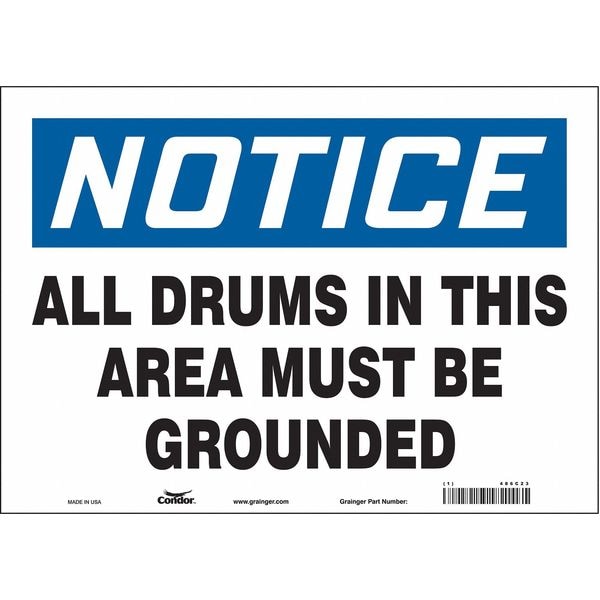 Safety Sign, Horizontal Rectangle, Number of Printed Sides 1, English, Sign Format Traditional OSHA, Sign Legend All Drums In This Area Must Be Grounded, Sign Legend Background Color White, Sign Legend Style Text