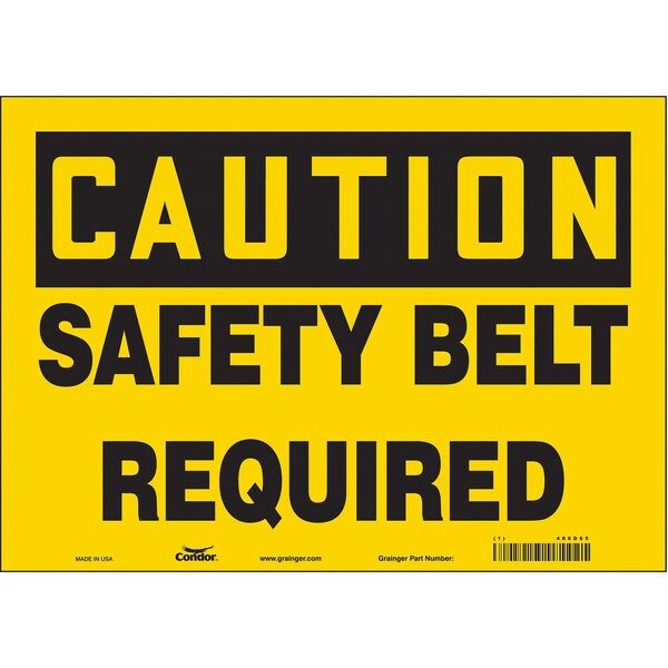 Safety Sign, Horizontal Rectangle, Number of Printed Sides 1, English, Sign Format Traditional OSHA, Sign Legend Safety Belt Required, Sign Legend Background Color Yellow, Sign Legend Style Text