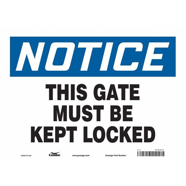 Safety Sign, Horizontal Rectangle, Number of Printed Sides 1, English, Sign Format Traditional OSHA, Sign Legend This Gate Must Be Kept Locked, Sign Legend Background Color White, Sign Legend Style Text