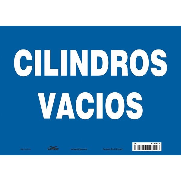 Safety Sign, Horizontal Rectangle, Number of Printed Sides 1, Spanish, Sign Format Other Format, Sign Legend Cilindros Vacios, Sign Legend Background Color Blue, Sign Legend Style Text