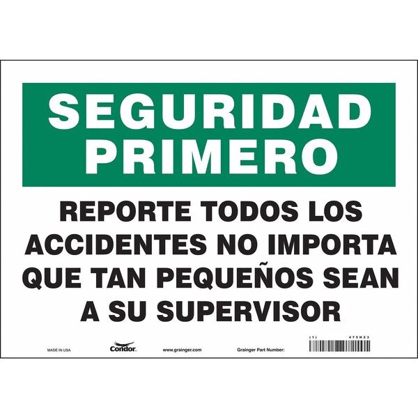 Safety Sign, 10 in Height, 14 in Width, Vinyl, Horizontal Rectangle, Spanish
