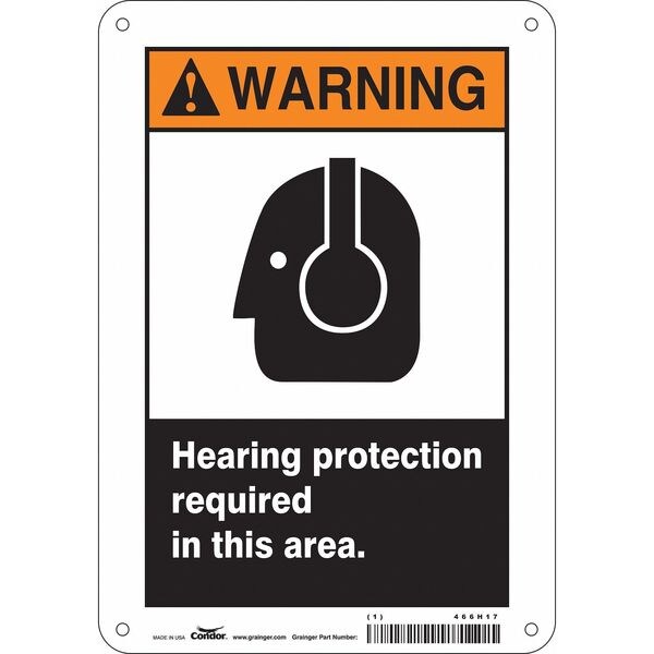 Safety Sign, Horizontal Rectangle, Number of Printed Sides 1, English, Sign Format ANSI/OSHA Format, Sign Legend Hearing Protection Required In This Area., Sign Legend Background Color Black, White, Sign Legend Style Symbol and Text